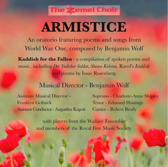 Armistice is a new oratorio that evokes the conflict and emotional toll of the First World War through text and music. It includes choral settings of famous poems such as They Shall Grow Not Old and In Flanders Fields, and arrangements of popular songs such as It’s a Long Way to Tipperary and Roses of Picardy. A combination of the familiar and the innovative, it combines poems by famous figures such as Rupert Brooke, Isaac Rosenberg and A.E.Housman with texts drawn from the Book of Common Prayer, classical Greek poetry and the Hebrew psalms. Its composer, Benjamin Wolf is Musical Director of the Zemel Choir and the Wallace Ensemble, both of whom are featured in the recording. He is also Director of Music at Belsize Square Synagogue and is a conductor, pianist, singer and academic. With outstanding performances by professional soloists and instrumentalists, this is an uplifting and thoughtful musical memorial. Two of the tracks are available to listen to below and are specially fitting for Remembrance Sunday.